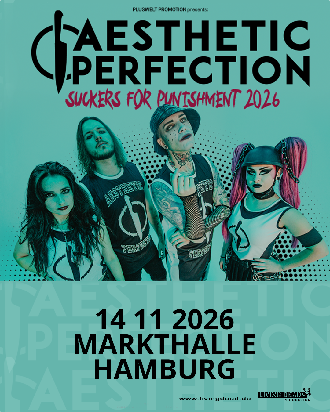 2026 kommen AESTHETIC PERFECTION mit ihrem neuen Album “All out war”, welches sie im Herbst desselben Jahres auf die Bühne bringen.