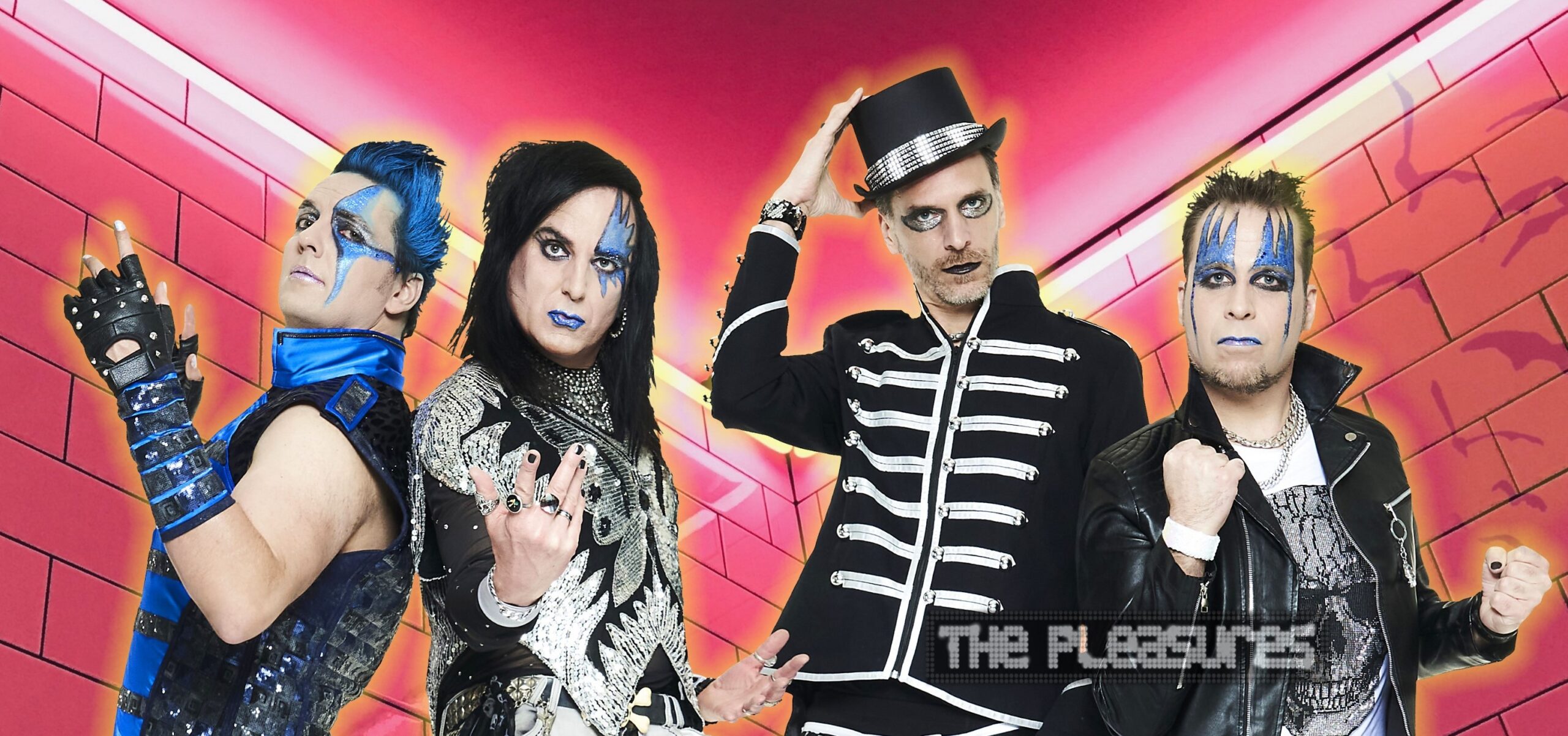 The Pleasures, Hamburg’s cult glam rock band since 2004, are coming to the legendary MarX to play one of their rare club concerts. Musically, the Pleasures, wearing garish makeup and rubber and spandex, sound as garish as they look – and vice versa. Their shows leave the impression that „Ziggy Stardust, in a sugar rush, is smooching Marilyn Manson at The Rocky Horror Picture Show.“ The audience is once again sporting all the unusual outfits and accessories: glow sticks, glow-in-the-dark dildos, glitter bombs, and colorful makeup. On stage, The Pleasures not only perform their own songs from their regular releases, but also perform a few iconic cover songs by old idols. And this continues until the entire audience is rocking along wildly. “I put some lipstick on and the eyes some blue, but glitter doesn’t sparkle without you”