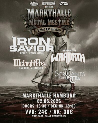präsentiert von Rockantenne, Deaf Forever, Rad Toad Nach dem großen Erfolg des " Markthalle Metal Meetings " im letzten Jahr, war der Wunsch groß nach einer Fortsetzung in 2026. Dieses Mal an Bord: Iron Savior Warpath Midnight Prey Servants To The Tide